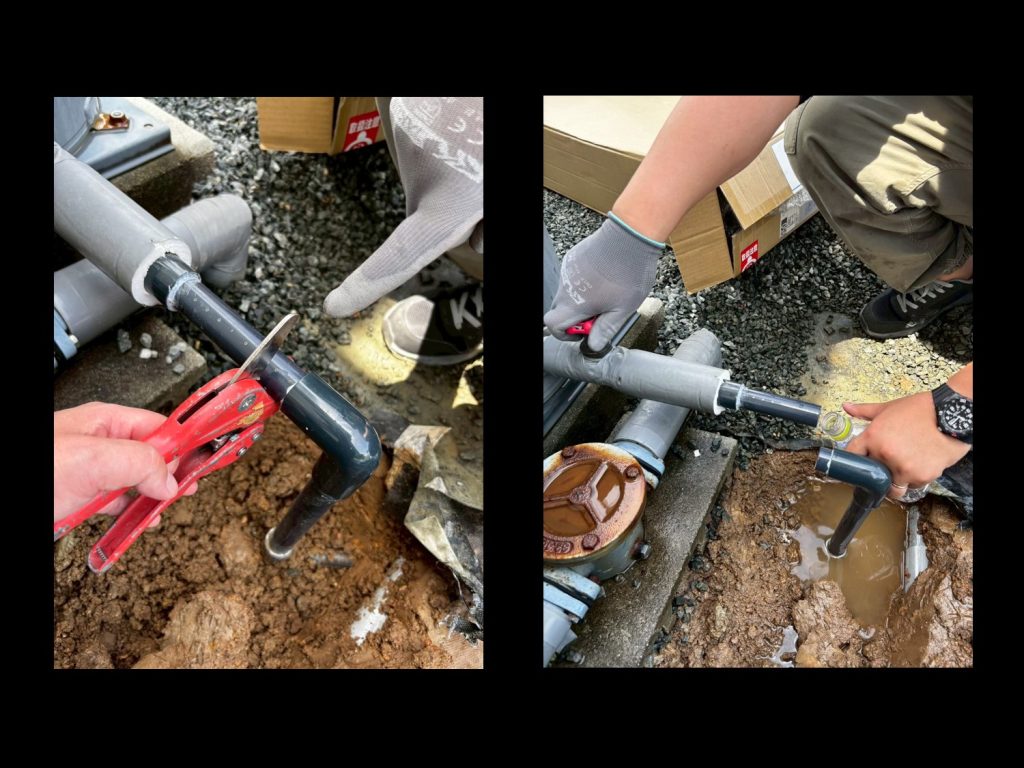 既存の水道管を切断し、WellFINEに繋げていきます。